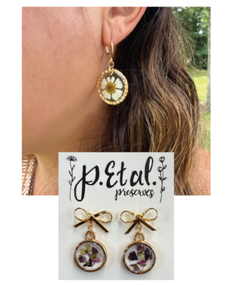 Description:Join local floral preservation artist Ali Nicolas of P.Etal.Preserves, to make your own pair of pressed flower earrings. Using delicately preserved flowers from Ali’s own collection, you will learn how to create a stunning pair of botanical earrings by setting your floral design in resin. Hypoallergenic earring findings and all other materials will be provided.